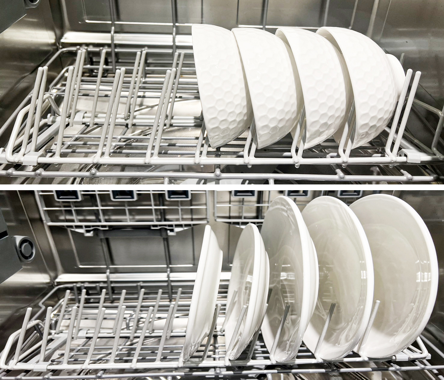 碗盤籃架上做了獨家設計,輕輕一拉即可加大籃架之間的距離,更滿足亞洲人使用較多大小碗的需求,還能夠拆卸以放置更大的鍋子,聰明設計讓您的使用上更加便利。