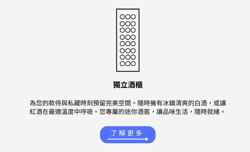 酒櫃為美酒創造最佳儲存環境,是對年份和酒莊的真正尊重。設置雙區,以最適合的溫度儲存各種葡萄酒,同時將您最珍貴的酒窖藏起來,窖藏功能可以防止光線、溫度、濕度和攪拌對酒的影響。